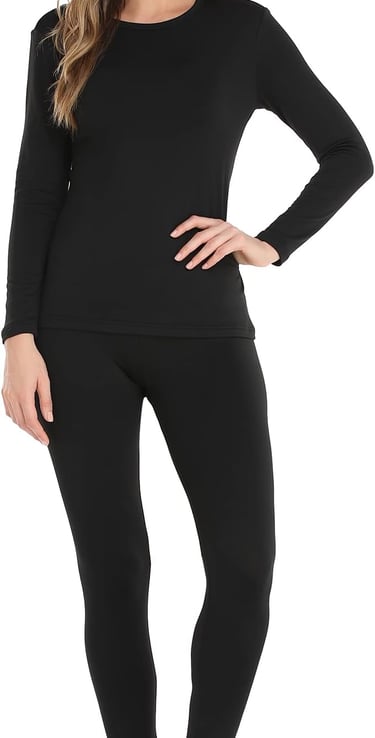 Stay warm without the bulk in this women's thermal base layers, designed to provide lightweight insulation, soft comfort, and everyday flexibility. Perfect as a cold-weather base layer or cozy loungewear, these fleece-lined thermals keep you warm, dry, and comfortable from morning to night.